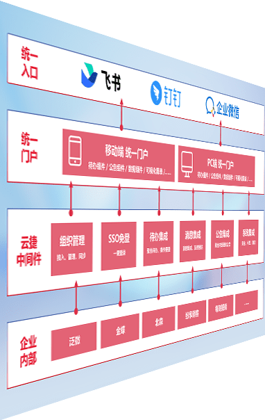 对协作平台提供支持服务,,支持企业应用与协作平台对接,,,,包含组织同步、、、消息集成、、、、待办集成等。。。支持目前主流的协作平台:钉钉、、、、企微和飞书。。